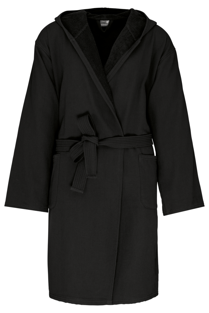 100 % Baumwolle. Alle Farben werden aus biologischer Baumwolle hergestellt. Terry-Strick. Angenehm und weich. Große Kapuze. Zwei aufgesetzte Taschen mit Verstärkungsziernaht oben an den Taschen. Bund mit Gürtelschlaufen. Befestigungshaken im Kragen. Doppelnähte an Kapuzensaum sowie Ärmelbündchen und Saum. Gerader Saum und Ärmelabschlüsse.